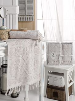 Закажите Комплект полотенец DO&CO махровые жаккард с бахромой в коробке (50x90 70х140) 2 шт. AMAZON цвет лиловый у компании Meleğim-текстиль в Россиина портале Alloy: