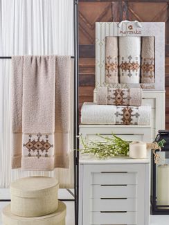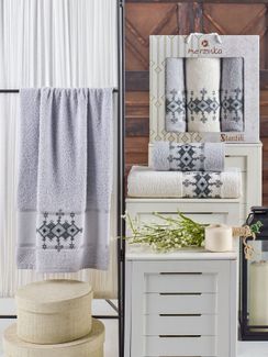 Закажите Комплект полотенец MERZUKA махровые в коробке (50x90 2)(70х140 1) 3 шт. OTANTIC у компании Meleğim-текстиль в Россиина портале Alloy: