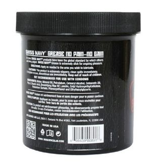 Лубриканты Swiss Navy упакованы в герметичные флаконы Удобный дозатор для легкого нанесения и предотвращения протекания даже при открытом флаконе. Все лубриканты и стимулирующие гели изготовлены из ингредиентов самого высокого качества. У флаконов уникальный современный дизайн. Крем Grease Swiss Navy – это лубрикант на масляной основе с безупречным скольжением и гладкостью. Крем снижает неприятные ощущения благодаря своей скользящей насыщенной структуре. Крем Grease способствует максимальному растяжению, благодаря чему возможно самое глубокое проникновение. Безусловно крем Grease делает то, что казалось бы анатомически невозможно, тем самым превращая жесткий контакт в максимальное удовольствие. Крем так же можно использовать для маструбации.