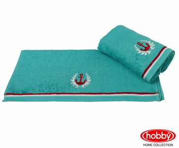 Махровое полотенце с вышивкой 50x90 "MARITIM", бирюзовое, 100% Хлопок