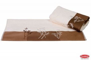 - Махровое полотенце с вышивкой 70x140 "FLORA", кремовый, 100% Хлопок в каталоге Каталог в России;