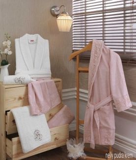 Закажите Махровый халат S "NELLY", пудра, 60% Бамбук 40% Хлопок, женский у компании Meleğim-текстиль в Россиина портале Alloy: