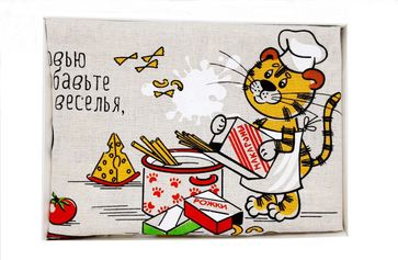 В комплект входит: Полотенце: 45х60 см - 1 шт. Прихватка:18х18 см - 1 шт. Тип материала: полулён. Состав: лен - 50% хлопок - 50%. Плотность: 160 г/м2. Рисунок наносится на ткань методом шелкографии. Страна-производитель: Россия None Возможен самовывоз. Есть доставка.