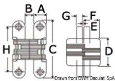 Osculati Hidden hinge 69 mm 2 pcs. package, 38.527.05