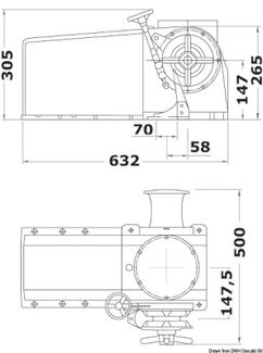 Osculati Italwinch Raja winch 2700 W 24 V - 12 mm ISO 2 gypsy, 1 drum, 02.410.03