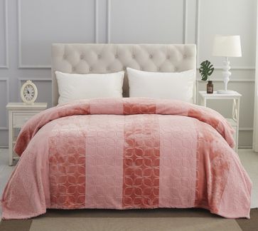 Пледы: Плед KARNA вельсофт жаккард "PALMA" 220x240 см цвет коралловый