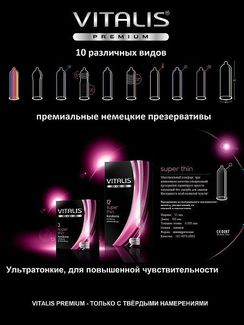 - Презервативы Супер тонкие №12 Vitalis Premium Super thin по выгодной цене 1 183 р. руб.;