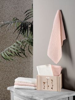 Салфетки махровые "KARNA" в корзине FLORI 30х30 см (6 шт) цвет персиковый