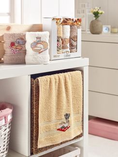 Салфетки TWO DOLPHINS махровые с вышивкой в коробке 30х50 (3 шт.) KITCHEN EKMEK