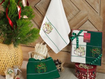 Закажите Салфетки вафельные с новогодней вышивкой "KARNA" HAPPY 40х60 см (2 шт) расцветка V1 у компании Meleğim-текстиль в Россиина портале Alloy: