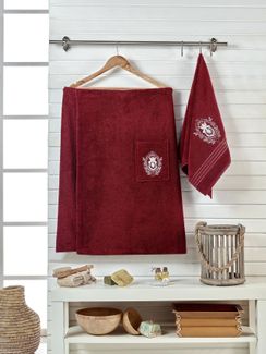 Закажите Сауна махровые с вышивкой мужская JUANNA 2 предмета BRODE цвет бордовый у компании Meleğim-текстиль в Россиина портале Alloy:
