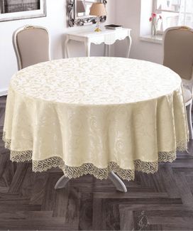 - Скатерть "KARNA" KDK с гипюром круглая 160 Q см цвет кремовый в каталоге Каталог в России;
