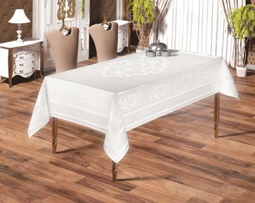 Скатерть "KARNA" жаккард пано CARAMEL 160x300 см цвет белый