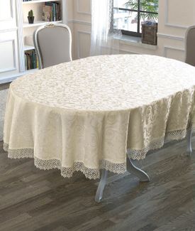 Скатерти: Скатерть "KARNA" KDK с гипюром овальная 160х220 см цвет кремовый