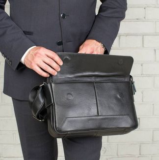 Закажите Сумка для документов Button черная у компании Московская Пеллетерия в Россиина портале Alloy: