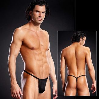 Мужские откровенные трусы - стринги черного цвета, спереди - гладкое полотно, сзади трусы имеют форму буквы V, ягодицы полностью открыты. None Возможен самовывоз. Есть доставка.