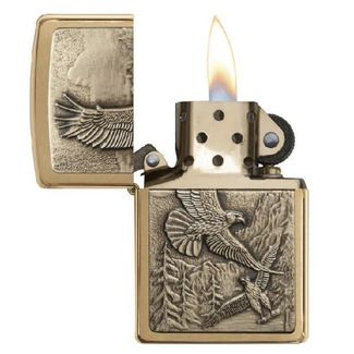 - Зажигалка золотистая матовая Zippo Where Eagles Dare Emblem №20854 с покрытием Brushed Brass по выгодной цене 7 000 р. руб.;