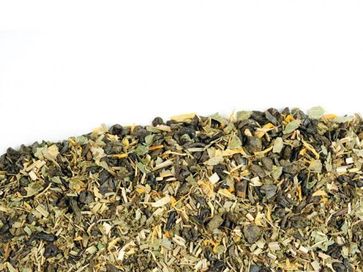 Чего не хватает знойными летними днями? Освежающего, бодрящего напитка! Именно такой чай в сочетании с натуральной мелиссой, листьями перечной мяты, листьями смородины, лепестками ноготков и лимонным сорго делает напиток незаменимым в жаркий день и душные ночи. Одного глотка хватает для заряда энергии на целый день, что же будет после чашки? Особенной пряности кисло-сладкому мятному напитку придают лепестки календулы и смородиновые листочки. Помимо освежающего, бодрящего и тонизирующего эффекта, чай имеет успокаивающее действие. Раздражительность, усталость после трудовых будней снимаются быстро. Пищеварение вместе с улучшением аппетита нормализуется. Календула противостоит развитию инфекций, изгоняет паразитов. Черная смородина, богатая витамином С, активно восстанавливает сосудистую систему, выводит «вредный» холестерин.