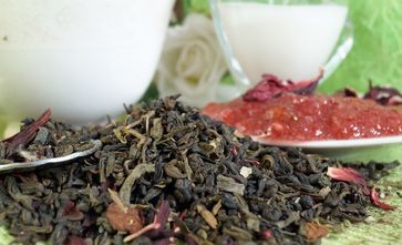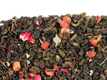 Крупный китайский зеленый порох с кусочками земляники и листьями ежевики, с великолепным ароматом земляники со сливками. Содержащиеся в чае катехин и танин полезны для здоровья.