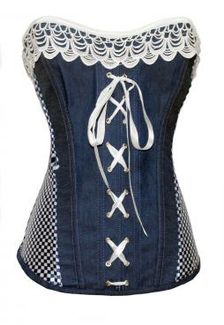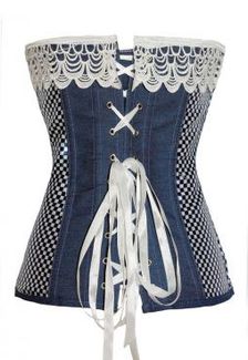 Корсет джинсовой расцветки с декоративной шнуровкой спереди,кружевной отделкой. Сбоку на молнии, сзади - на люверсах. В наличии S 1 шт None Есть доставка.