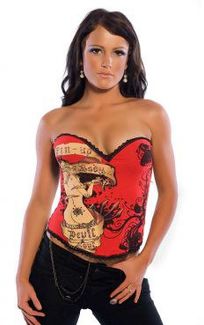 Корсет красного цвета с рисунком. Украшен черной окантовкой. Сзади на крючках-невидимках. В наличии L 1 шт None Есть доставка.