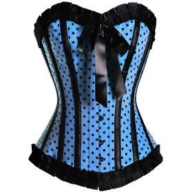 Лазурный корсет в черный горошек. Украшен рюшами и бантиком в области декольте. Спереди на застежке-петле, сзади - на шнуровке. В наличии XL 1 шт None Есть доставка.