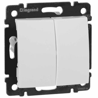 - Legrand Переключатель кнопочный двухклавишный Legrand Valena белый 774218 ID - 242976 по выгодной цене 981 р. руб.;