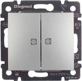 - ЛЕГРАНД Валена 694344 выключатель двухклавишный с подсветкой алюминий LEGRAND Valena 694344 выключатель двухклавишный с у с подсветкой алюминий по выгодной цене 917 р. руб.;