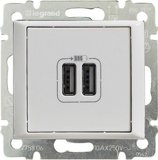 ЛЕГРАНД Валена 694370 розетка электрическая 2 модуля USB белая LEGRAND Valena 694370 розетка электрическая 2 модуля USB с у белая