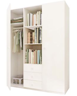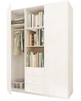 Шкаф 3-х секционный белый Фея изготовлен из ЛДСП. В нем есть отделение с 5 полками для одежды, секция с открытыми полками и ящиками и отдел с штангой для одежды и антресолью. Наличные, Visa/MasterCard, Яндекс.Деньги, WebMoney Возможен самовывоз. Есть доставка.