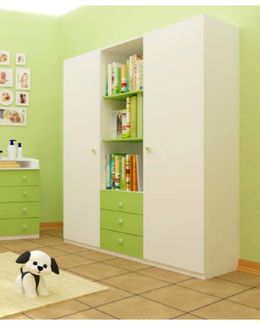 Шкаф 3-х секционный белый-лайм Фея изготовлен из ЛДСП. В нем есть отделение с 5 полками для одежды, секция с открытыми полками и ящиками и отдел с штангой для одежды и антресолью. Наличные, Visa/MasterCard, Яндекс.Деньги, WebMoney Возможен самовывоз. Есть доставка.