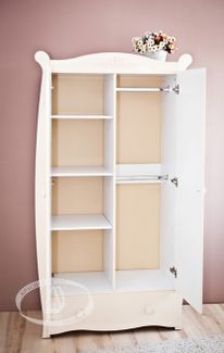 Шкаф Красная звезда С 538 Бабочка белый - двухдверная модель с двумя отделениями, 3 полками, 2 штангами для хранения одежды на плечиках и вместительным ящиком. Декор - аппликация и стразы. Материал - массив березы, МДФ. Для детей от 2 лет и старше. Наличные, Visa/MasterCard, Яндекс.Деньги, WebMoney Возможен самовывоз. Есть доставка.