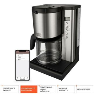 Кофеварка Redmond SkyCoffee RCM-М1519S – современный прибор для приготовления ароматного кофе и чая в домашних условиях. В комплекте идет вместительный кувшин объемом 1,5 л, который позволит приготовить кофе, чай или травяные напитки даже для большой компании. Тип используемого кофе молотый. Тип управления электронный / дистанционный (Ready for Sky). Голосовой помощник Алиса / Маруся. Цвет черный / металл. Мощность 1000 Вт. Приготовление американо. Материал корпуса пластик / нержавеющая сталь. Материал кувшина термостойкое стекло / пластик. Объем кувшина 1,5 л. Объем резервуара для воды 1,5 л. Регулировка крепости напитка. Таймер. Возможность использования бумажных фильтров. Функция «Анти-капля». Функция автоотключения. Индикация работы светодиодная. Дисплей ЖК. Подогрев кувшина. Автоподогрев. Габаритные размеры 215х215х332 мм. None Возможен самовывоз.