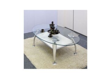 Высота: 42 см.Длина,ширина: 135 х 80 см.Цвет ножек - хром,белый Столешница - прозрачная, полка- белаяФорма столешницы - овал, полка - прямоугольная None