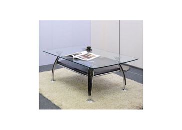 Высота: 42 см.Ширина, глубина : 120 х 70 см.Цвет ножек - хром.Столешница - прозрачная, полка - лак корич.кродил кож.зам.Форма столешницы - прямоугольная, полка - прямоугольная None