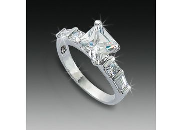 Это изящное кольцо имеет центральную вставку из искусственного бриллианта весом 2 ¾ карата и боковыми вставками из круглых и пирамидальных безупречных багетов весом 1 ¼ карата. None Есть доставка. Доставка: 240.0RUR
