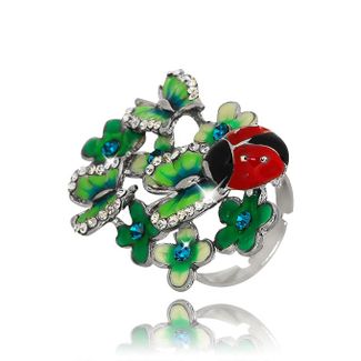 Материал: эмаль, гипоаллергенный бижутерный сплав (без никеля и свинца) с гальваническим покрытием. Тип кольца: безразмерное, подходит на любой палец. Размер украшения: 3,8 x 2,6 см. Вставки: Swarovski. Изделие гипоаллергенно. None Возможен самовывоз. Есть доставка.