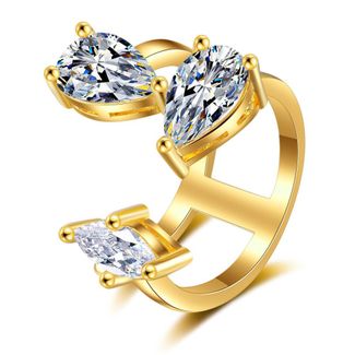 Материал: ювелирное покрытие чистым золотом толщиной 0.45 микрон. Тип кольца: безразмерное, подходит на любой палец. Размер украшения: 1,6 x 1,9 см. Вставки: фианиты с бриллиантовой огранкой, выполненные по австрийской технологии. Изделие гипоаллергенно. None Возможен самовывоз. Есть доставка.