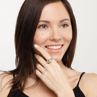 Материал: ювелирное покрытие чистым серебром толщиной 9 - 12 микрон. Тип кольца: имеет фиксированный размер, перед покупкой выберите нужный размер в выпадающем списке. Размер украшения: 1,2 x 1,1 см. Вставки: Swarovski. Изделие гипоаллергенно. None Возможен самовывоз. Есть доставка.