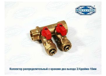Коллектор распределительный с кранами два выхода 3 4дюйма-16мм