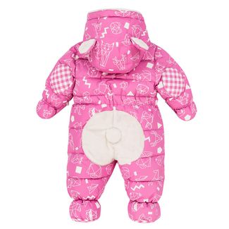 Мимимишный комбинезон для девочки с простёжкой, которая придает комбинезону вид "пуховичка". Ткань на ощупь нежная и гладкая, но при этом сохраняет все свойства хорошего зимнего комбинезона. Милые ушки, мохнатая "попка" и аппликация на грудке придают нежность. Пинетки не отстегиваются, что дает больше утепления вашему малышу, которые так необходимо ему в первые месяцы рождения. Ручки можно открыть, а можно спрятать в комбинезон. Комплектация: комбинезон, манишка (флис), шарф (флис). Количество наполнителя: