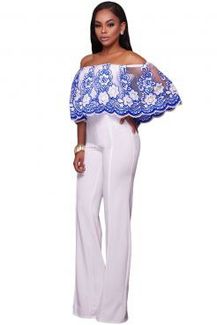 Брючный комбинезон с воланом на плече - идеальный вариант для летнего сезона! Брюки прямого кроя. Изделие декорировано цветочной вышивкой. В наличии S 1 шт None Есть доставка.
