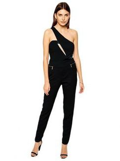 Комбинезон эффектного дизайна! Изделие приталенного кроя. На спинке потайная молния. Украшено вставками из атласной ткани. Брюки заужены книзу. В таком образе Вы не останетесь незамеченной! В наличии M 1 шт None Есть доставка.