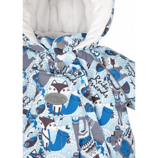 Комбинезон Reike Indian forest camp blue выполнен из ветрозащитной, водоотталкивающей и дышащей мембранной ткани, декорированной принтом с забавными животными-индейцами. Хлопковая подкладка с велюровыми вставками на спине, воротнике и капюшоне обеспечивает дополнительный комфорт и тепло. В рукавах для удобства надевания используется в качестве подкладки гладкий полиэстер. Застегивается на две вертикальные молнии, обеспечивая легкое переодевание новорожденного. Дополнительная застежка - кнопки в области горловины. Сзади на талии комбинезон присборен на резинку. На рукавах и штанинах предусмотрены клапаны, закрывающие ручки и ножки для сохранения тепла. Несъемный капюшон с ушками оформлен трикотажной резинкой. Спереди комбинезон дополнен кармашком на липучке и светоотражающими деталями на груди и спинке. Базовый уровень. Коэффициент воздухопроницаемости комбинезона: 2000гр/м2/24 ч. Водоотталкивающее покрытие: 2000 мм. Утеплитель: Polyfill 300 гр. Состав: 100% полиэстер, подкладка: 100% хлопок. Внимание! Фактический цвет изделия может незначительно отличаться от цвета на фотографии в связи с особенностями цветопередачи различных цифровых устройств. None
