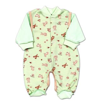 Слип с рукавами и вшитыми пинетками. Сделан из тонкого 100%-го хлопка (интерлока). Швы мягкие и не натирают. Кнопки расположены от горла до ножек - можно легко и быстро полностью расстегнуть слип, не повреждая кожу малыша. В такой пижамке очень уютно спать :) None