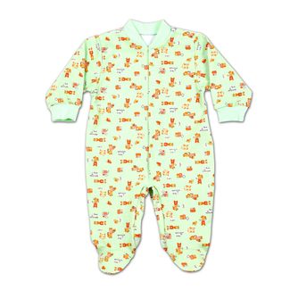 Слип с рукавами и вшитыми пинетками. Сделан из тонкого экологически чистого 100%-го хлопка (интерлока). Швы мягкие и не натирают. Кнопки расположены от горла до ножек - можно легко и быстро полностью расстегнуть слип, не повреждая кожу малыша. В такой пижамке очень уютно спать :) None