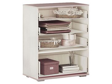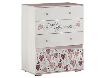 Детский комод Малибу станет отличным дополнением к нежному интерьеру комнаты маленькой принцессы. Модель имеет четыре выдвижных ящика на бесшумных направляющих. Комод станет практичным решением для хранения постельного белья, одежды и прочих принадлежностей ребенка.<br> Характеристики: <br> Материал: ЛДСП.<br> Тип направляющих: шариковые полного выдвижения.<br> Наполнение: четыре выдвижных ящика.<br> Максимальная нагрузка на ящик: 10 кг.<br> Материал ручек: АБС-пластик в форме горного хрусталя.<br>