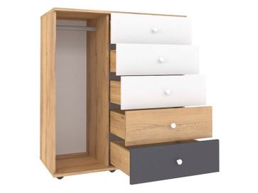 Детский комод Лойс создан для того, чтобы ребенку было удобно поддерживать порядок в комнате. Открытая ниша со штангой отлично подходит для хранения школьной формы, а выдвижные ящики открывают полный доступ к содержимому и помогают быстро отыскать нужную вещь.<br>