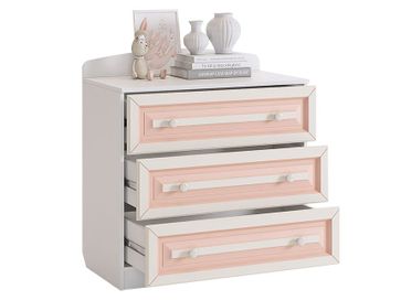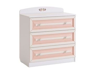 Комод Алиса стильный и вместительный. Мебельное изделие оснащено тремя ящиками, в нем удобно хранить детскую одежду, аксессуары и игрушки. Благодаря функциональному элементу интерьера малышка станет учиться порядку и осознанию, что опрятность – залог красоты комнаты.<br> Каждый ящик комода окантован резным декором, который дублирует игра цветов – белого и зефирно-розового. Сверху комод украшает изумительная в своей трогательности и нежности цветочная аппликация. Материал исполнения изделия - ЛДСП.<br> Обратите внимание, комод входит в модульную систему Алиса, элементы которой превосходно сочетаются друг с другом.<br> Фасады изделия выполняются в бежевом цвете. Пожалуйста, учитывайте это при заказе.<br> None Страна производства: Россия