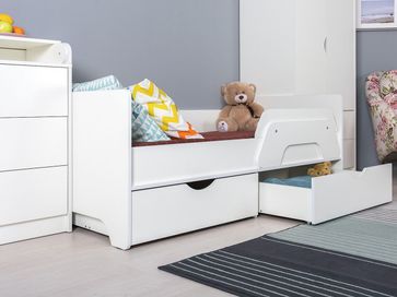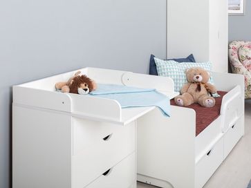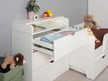 Детский комод Уна оборудован складным столиком для пеленания, который можно снять, когда малыш подрастет. Выдвижные ящики открываются и закрываются плавно и практически бесшумно. Продуманная система хранения позволит держать под рукой все необходимые принадлежности.<br>
